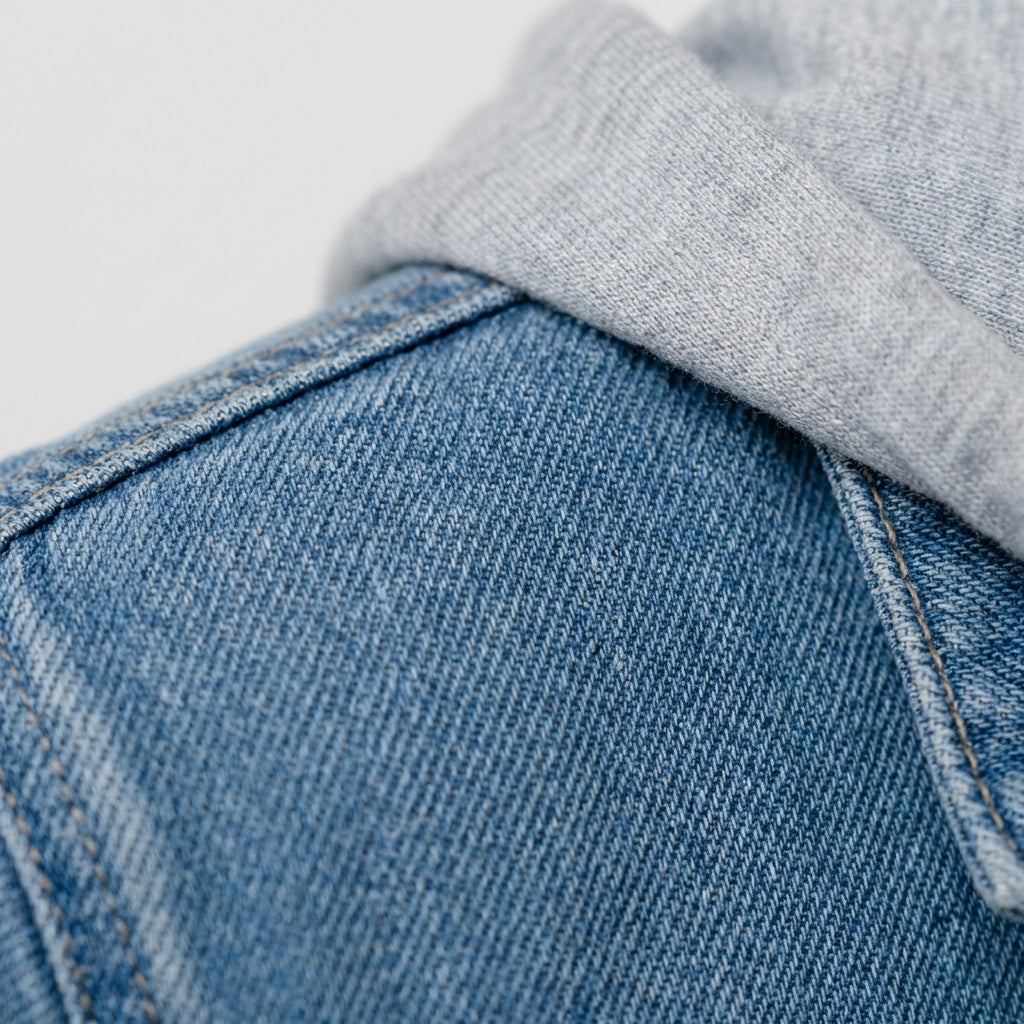 100% Baumwolle (Denim) + Kapuze aus Baumwollmischgewebe
